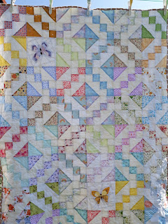 Dokonce jsem jí mohla něco ušít, což jsem udělala s radostí. Deka cca 95x140 cm. Ze zadní strany jsem dala minky. Do zavinovačky jsem ušila peřinku z peří - podařilo se mi v létě krásně vyprat a usušit jeden starší polštář. Na bryndáčky jsem použila ústřižky froté, které mi ještě zbyly, když jsem šila na starší děti. Ještě jsem šila hnízdo, ale nějak jsem ho zapomněla vyfotit :-(,